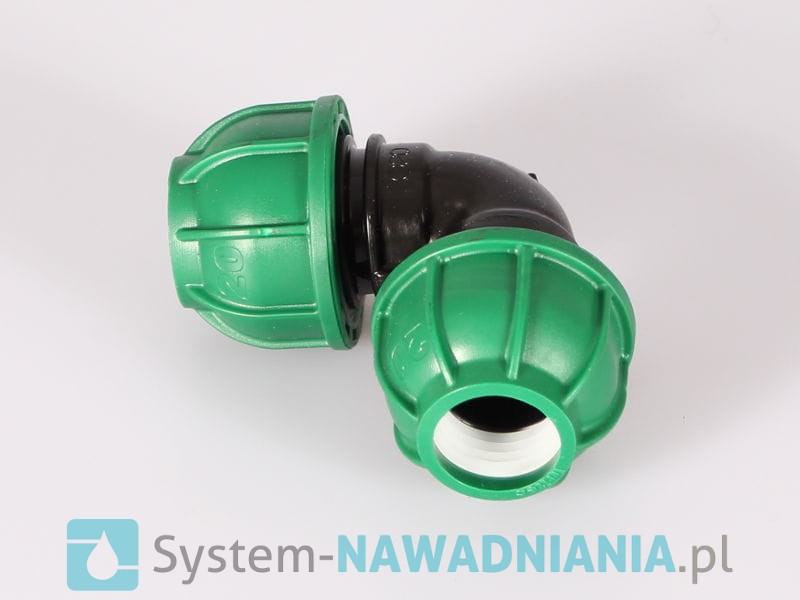 Kolano skręcane firmy Irritec 20 mm - 20 mm (zielona nakrętka).