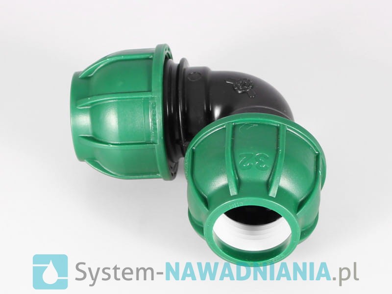 Kolano skręcane firmy Irritec 32 mm - 32 mm (zielona nakrętka).