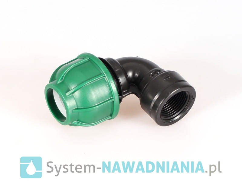 Kolano skręcane z gwintem wewnętrznym firmy Irritec 25-3/4''GW (zielona nakrętka).
