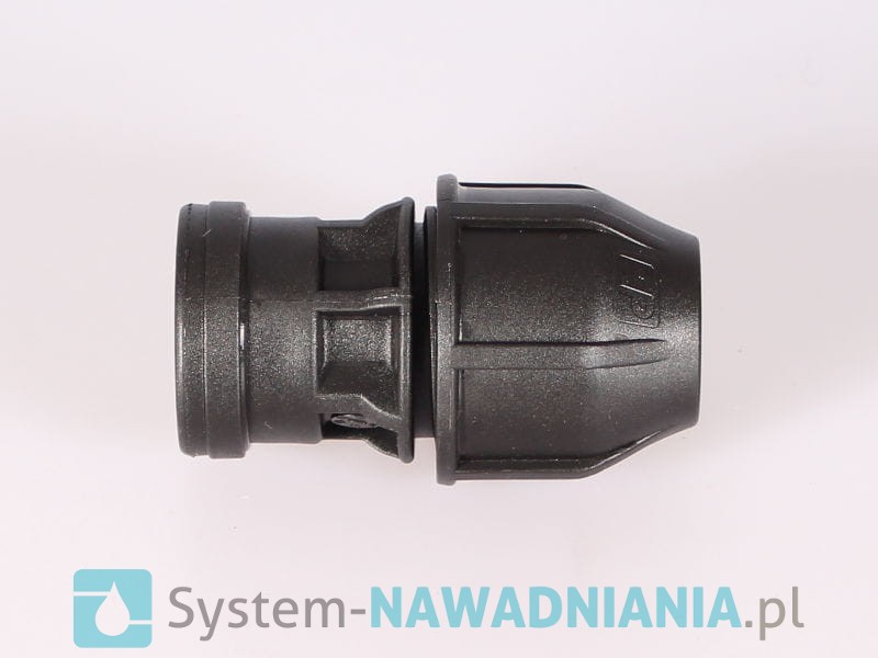 Przeloty skręcane z gwintem wewnętrznym firmy Fish 20 mm - 3/4 cala (czarna nakrętka). Przelot daje możliwość połączenia rury z innymi elementami systemu nawadniania.