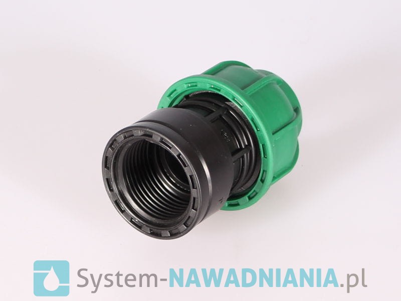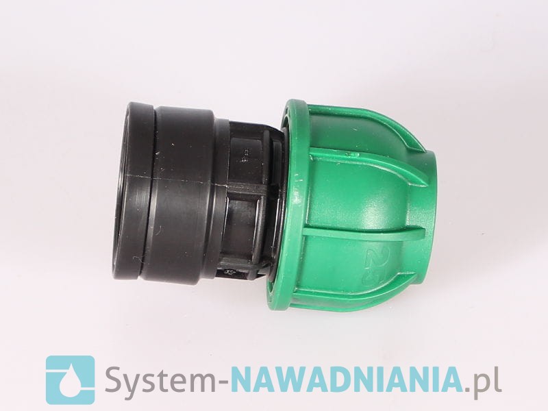 Przeloty skręcane z gwintem wewnętrznym firmy Irritec 25 mm - 1 cal (zielona nakrętka). Przelot daje możliwość połączenia rury z innymi elementami systemu nawadniania.