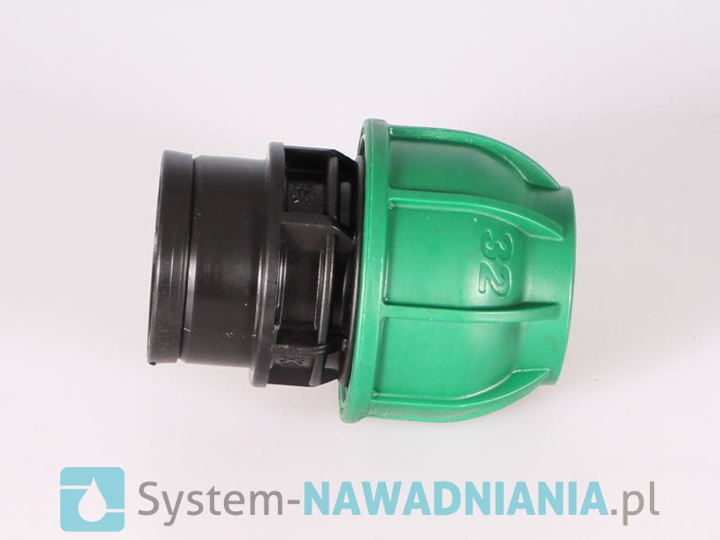 Przeloty skręcane z gwintem wewnętrznym firmy Irritec 32 mm - 1 cal (zielona nakrętka). Przelot daje możliwość połączenia rury z innymi elementami systemu nawadniania.