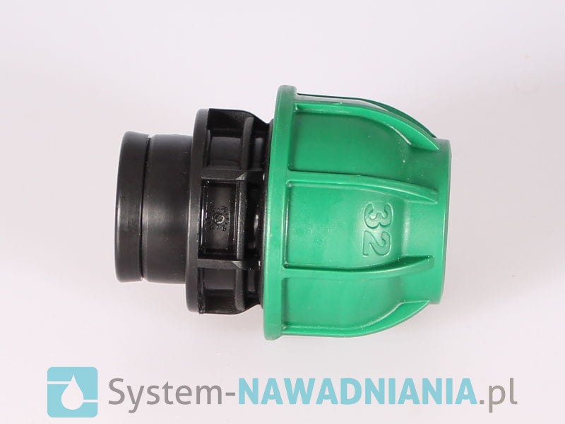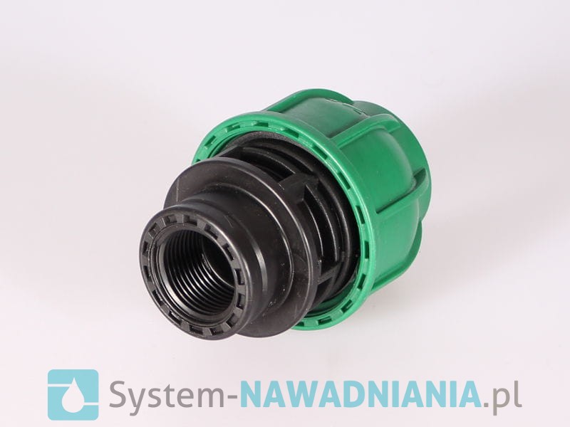 Przeloty skręcane z gwintem wewnętrznym firmy Irritec 32 mm - 3/4 cala (zielona nakrętka). Przelot daje możliwość połączenia rury z innymi elementami systemu nawadniania.