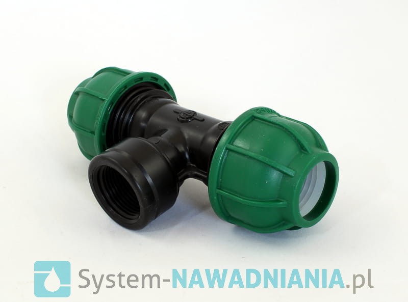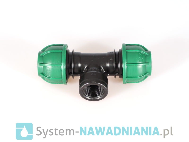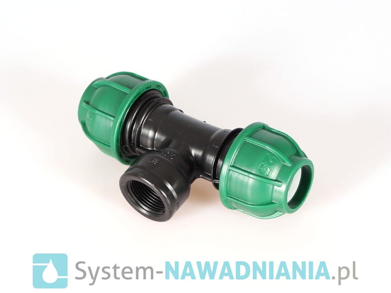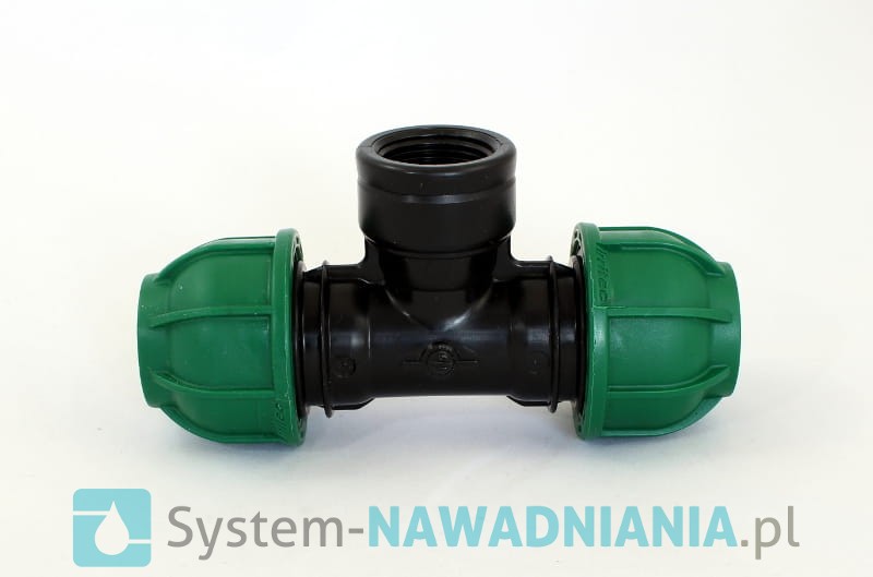 Trójnik skręcany z gwintem wewnętrznym firmy Irritec 25 mm - 3/4 cala - 25 mm (zielona nakrętka).