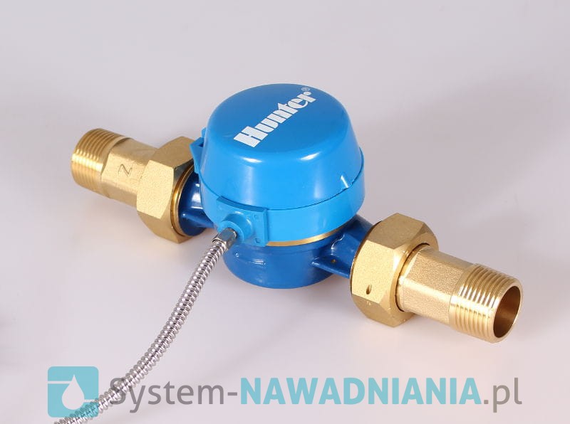 Calowy przepływomierz HC-100-FLOW przeznaczony jest do współpracy ze sterownikami, które łączą się z internetem za pomocą sieci wi-fi i współpracują z oprogramowaniem Hydrawise. Obecnie są to sterowniki z rodziny HC oraz PRO-HC firmy Hunter. Podpięty do sterownika przepływomierz umożliwia: wykrywać, monitorować, raportować, przepływ oraz zużycie wody w całym systemie. Instalując przepływomierz użytkownik zyskuje zabezpieczenie przed niekontrolowanymi wyciekami z systemu nawadniającego, które zwiększają zużycie wody i mogą stanowić niebezpieczeństwo dla roślin. Dla instalatorów i osób opiekujących się systemami nawadniającymi, jest to również wspaniałe narzędzie, które pozwala wykryć usterkę systemu zaraz po jej wystąpieniu. Szybsza reakcja na awarię, pozwala uniknąć niepotrzebnej degradacji nawadnianego terenu. HC-100-FLOW łączy się ze sterownikiem dwużyłowym kablem. Przepływomierz ma także analogowy licznik, który pozwala w tradycyjny sposób odczytać ilość zużytej wody.
