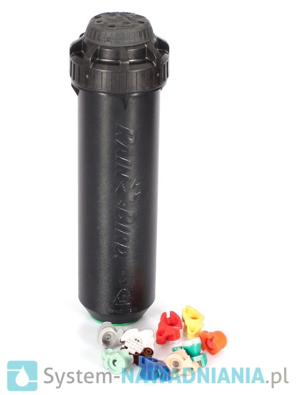 Do zraszacza dostępnych jest aż 12 wymienialnych, różnokolorowych dysz (dostępne oddzielnie). Są one wykonane w technologii "Rain Curtain" z trzema wyjściami (na krótki, średni i długi zasięg), która zapewnia równomierną dystrybucję wody i idealne nawodnienie murawy. Zasięg każdej z dysz można zredukować o około 25% przy pomocy śruby regulującej/mocującej.